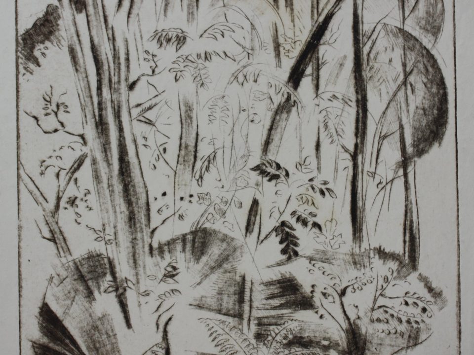 August 28, 2019RI175 In the ForestScenery in Bucks County, Pennsylvania. Drypoint and roulette. Signed and dated
